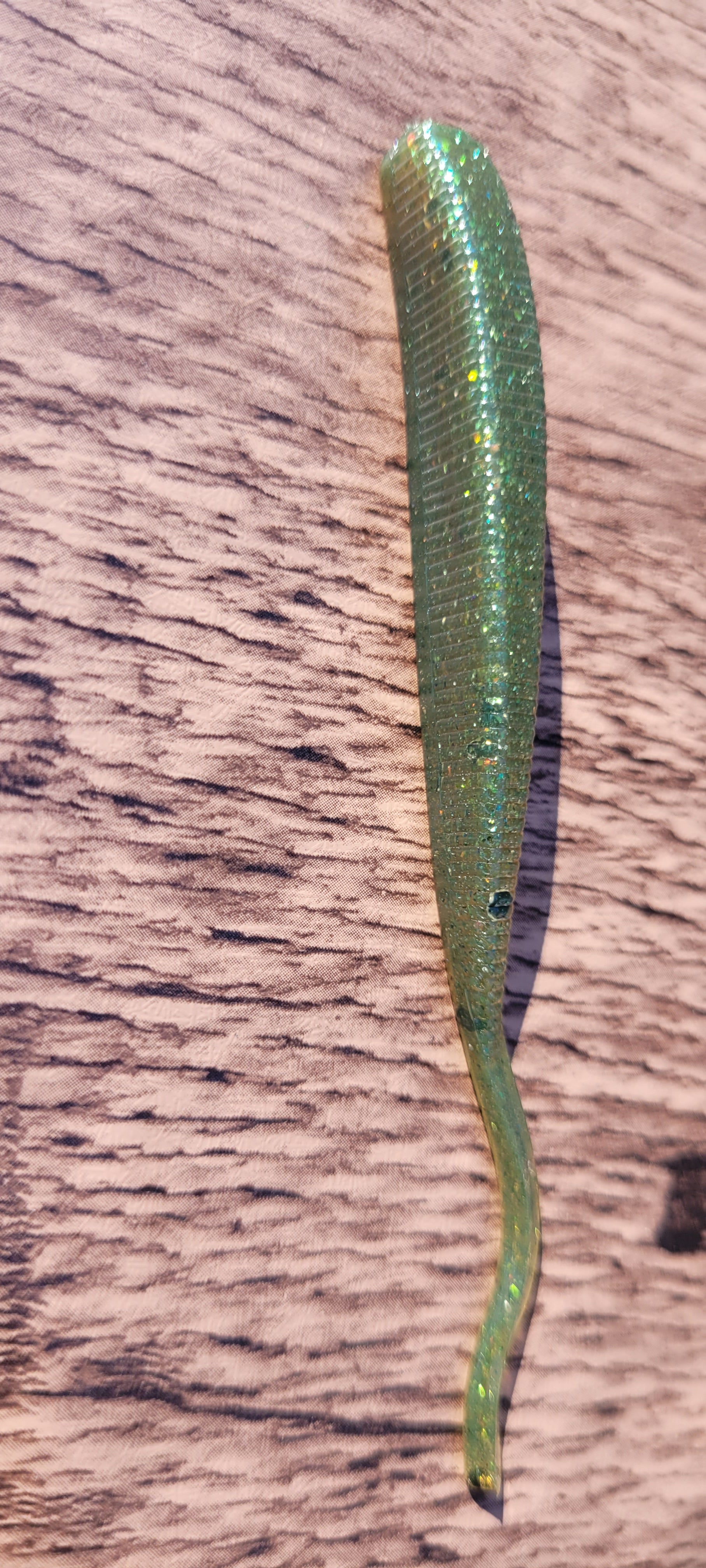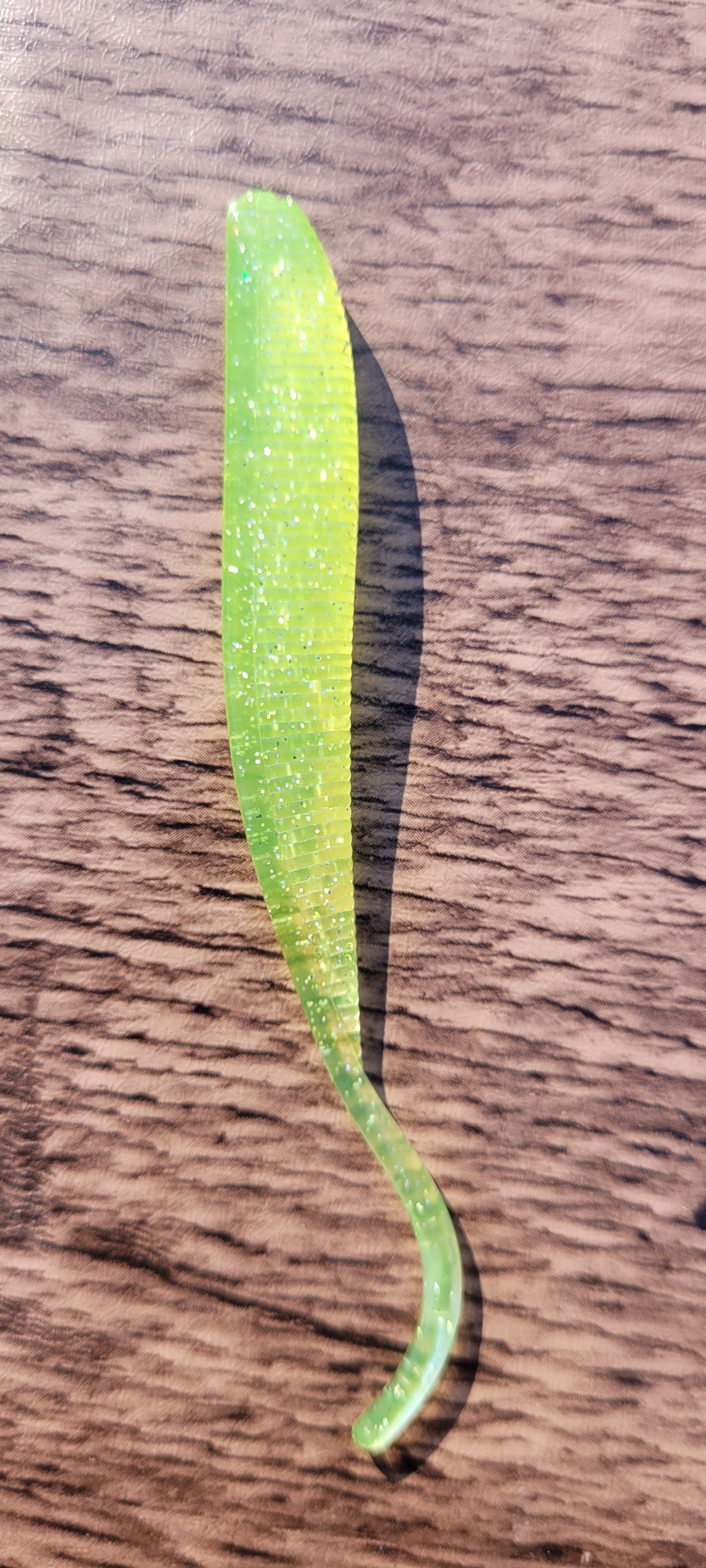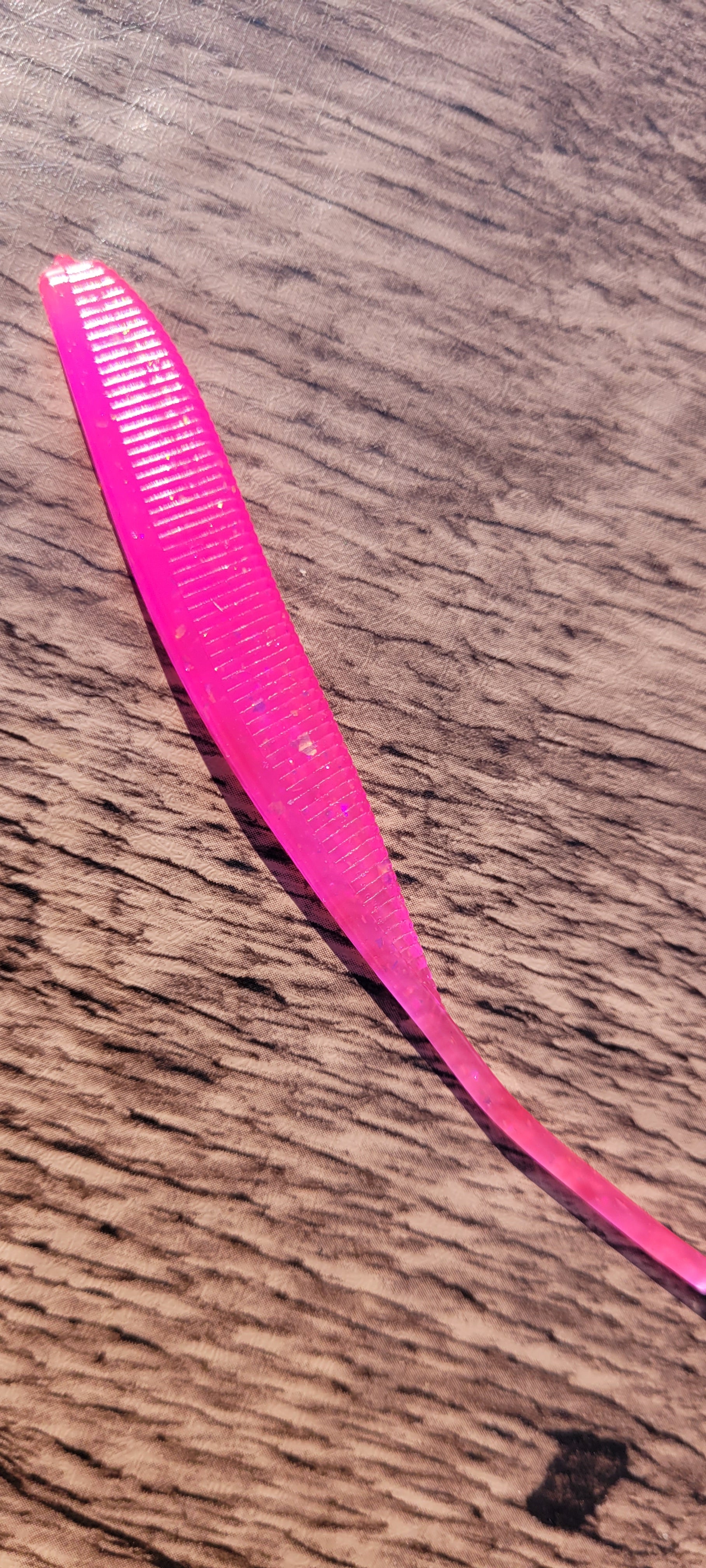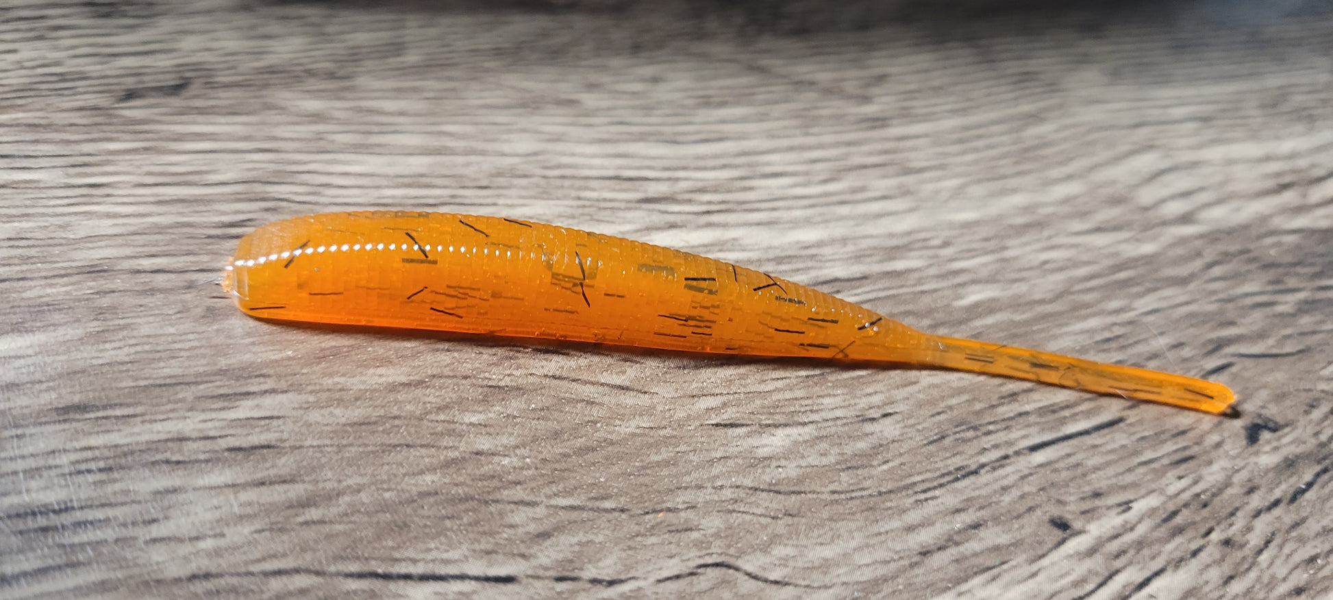 Imitates a bait fish. This little swimbait has a slim profile that helps it glide through the water, while the ribbed sides add some attention getting vibrations