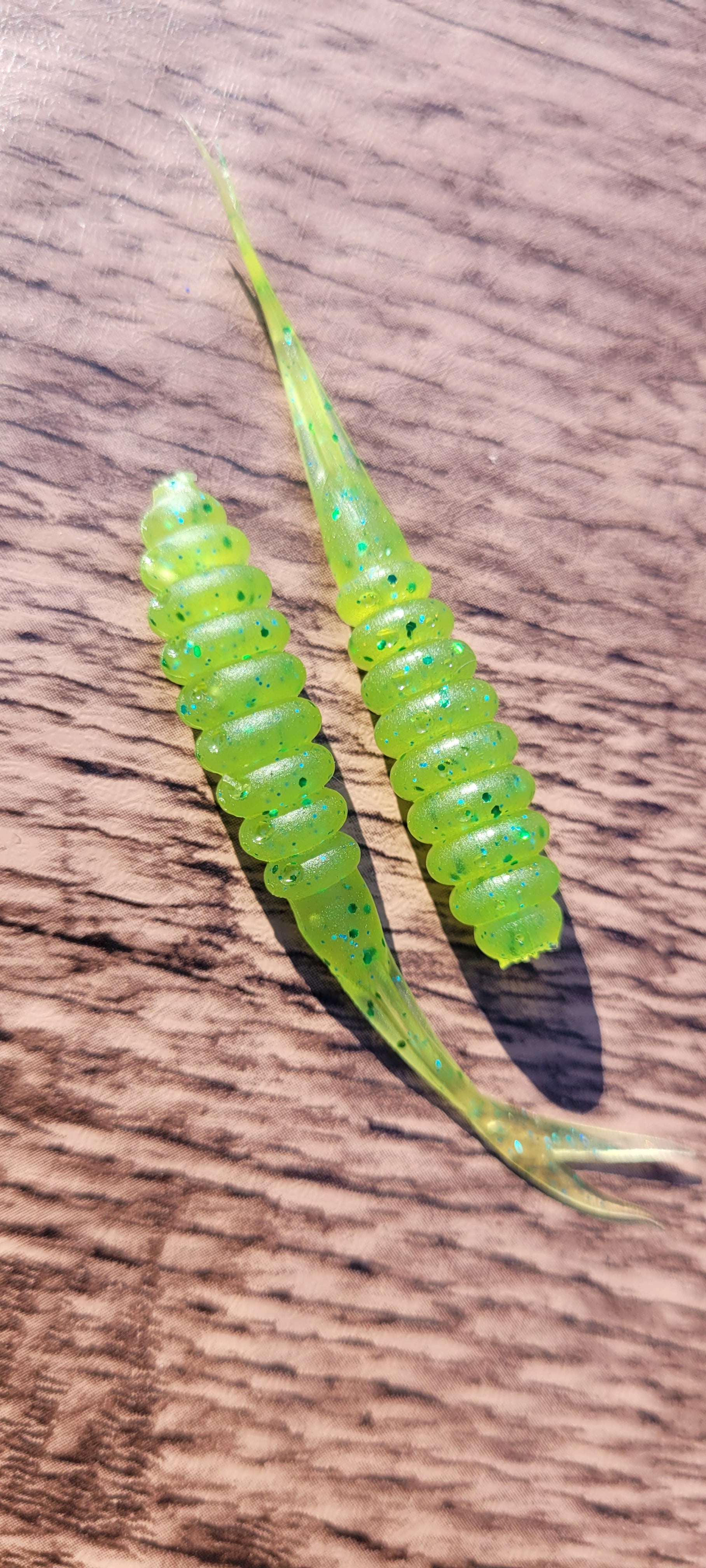 This little bait is a sweet morsel. Tiny body has great water displacement. Prefect for throwing on a smaller jig head for crappie and panfish.