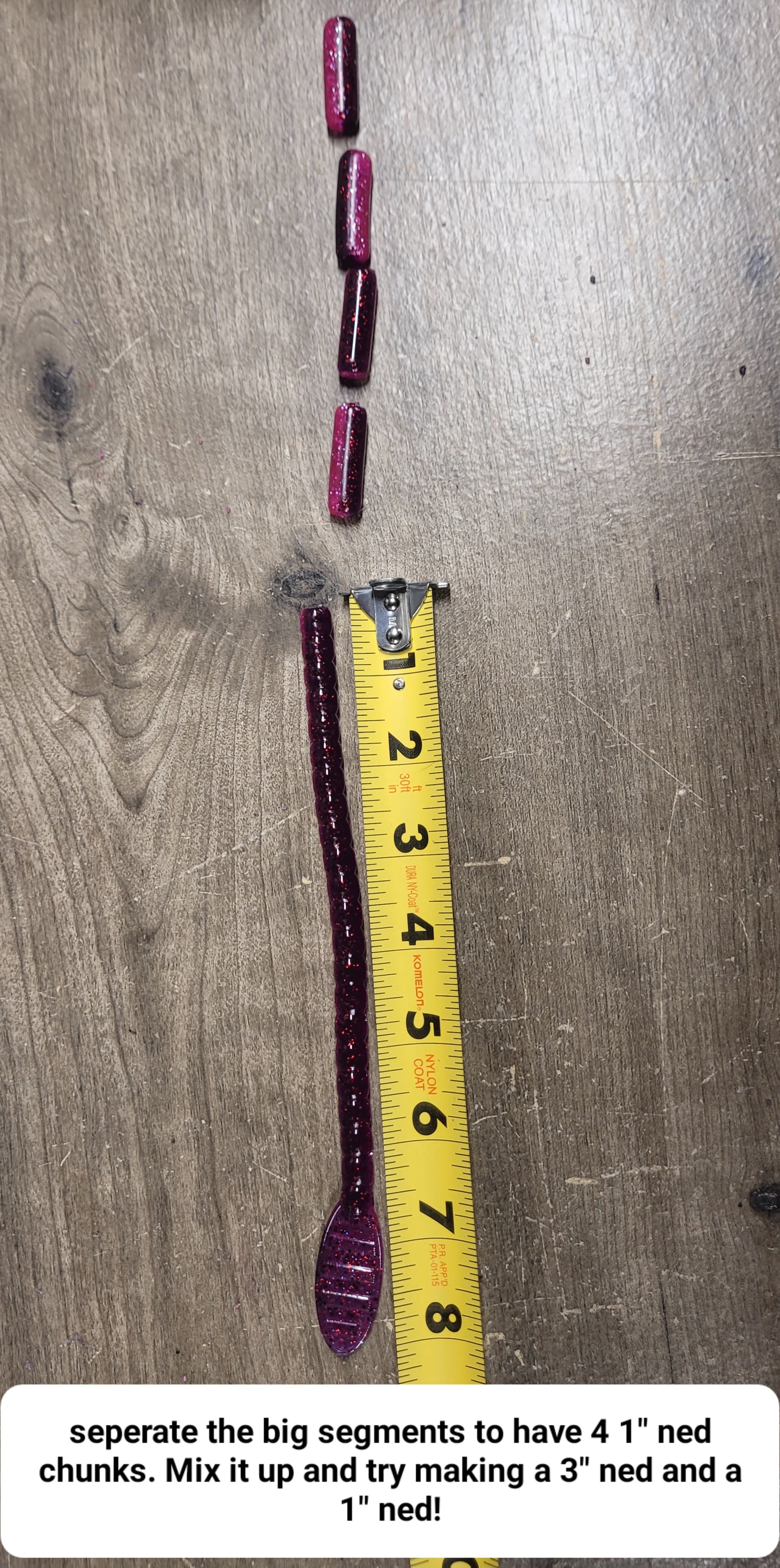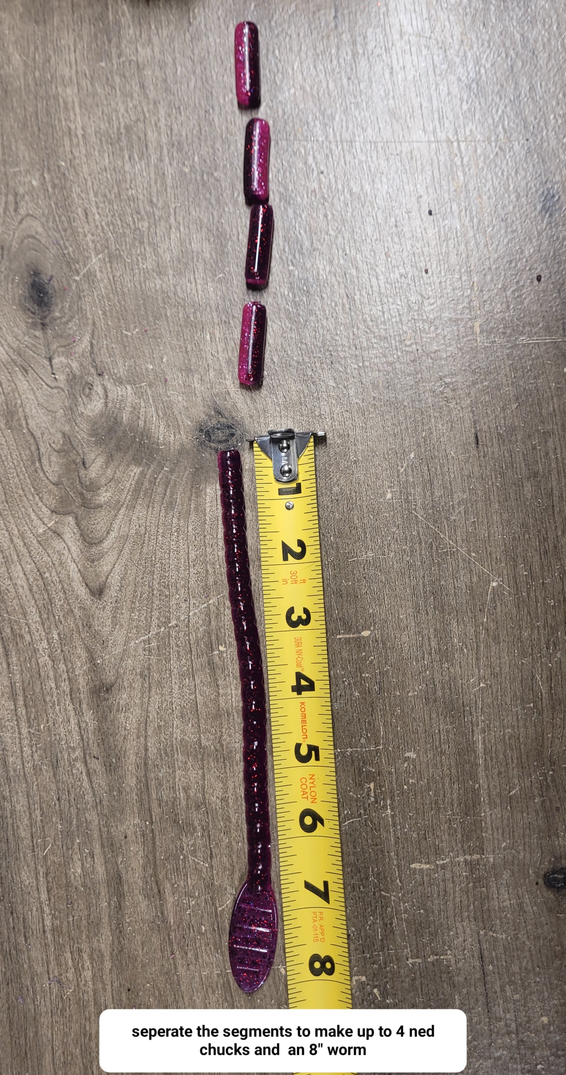 Transform your fishing game with the Infernal Worm! This versatile 13" worm can be adjusted to 9", 10.5", 11.75", or a full 13" for a range of bait options. Its segmented body allows for various baits, perfect for panfish bites, a wacky worm or 13" monster on a Neko rig. Catch more fish with one powerful worm!