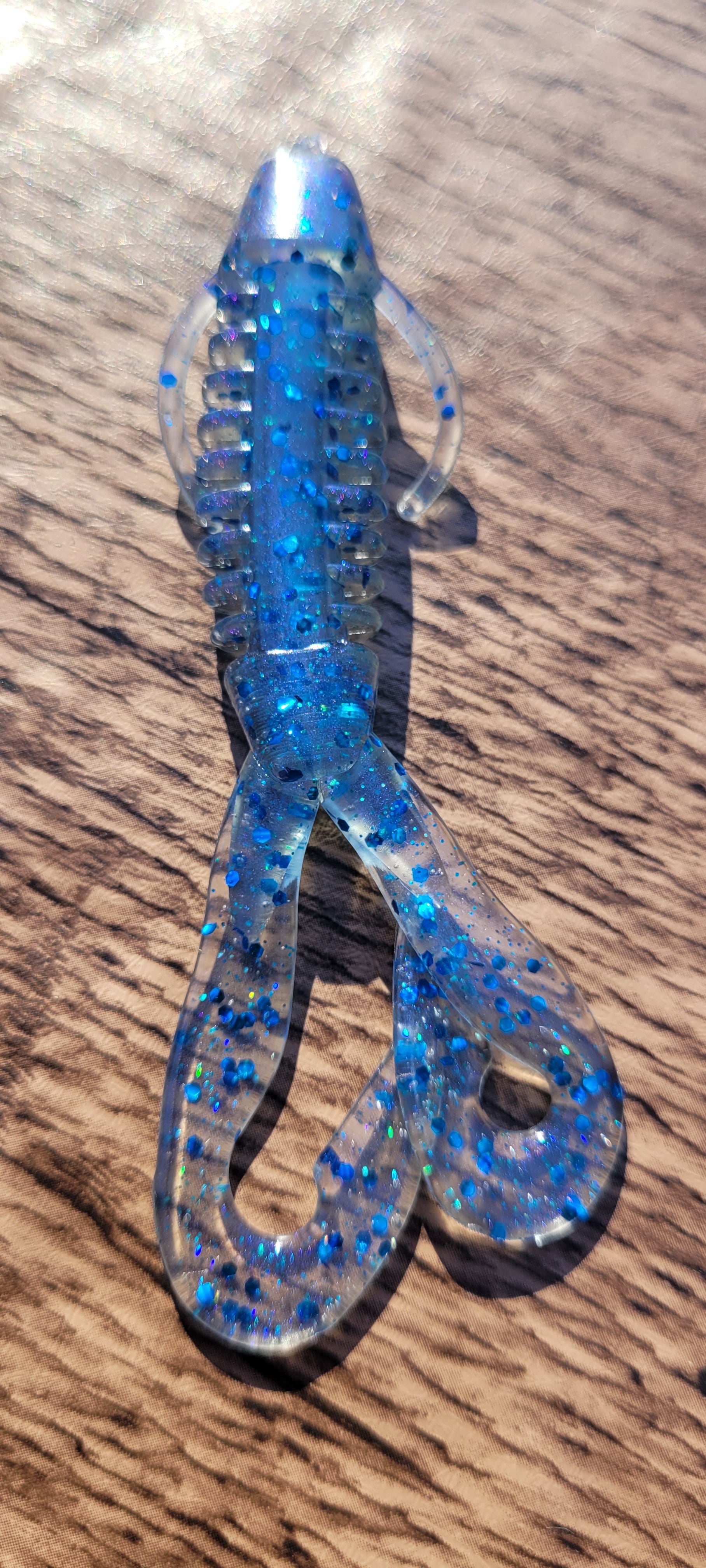 This bait has all the right stuff! Critter legs and twin twister tails will call attention to it. The ribbed body adds water displacement and amps up the sparkle, imitating baitfish. Shimmer like a bait fish or bounce like a craw, it will have you catching fish!